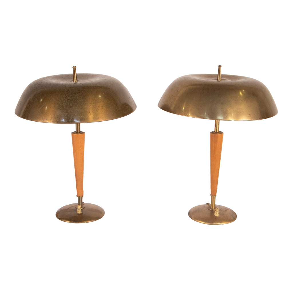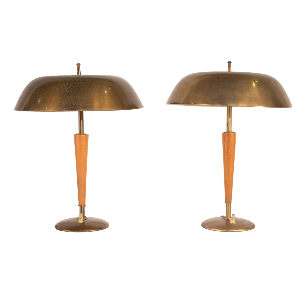 #270 Pair of Table Lamps in Brass and Wood by Bertil Brisborg