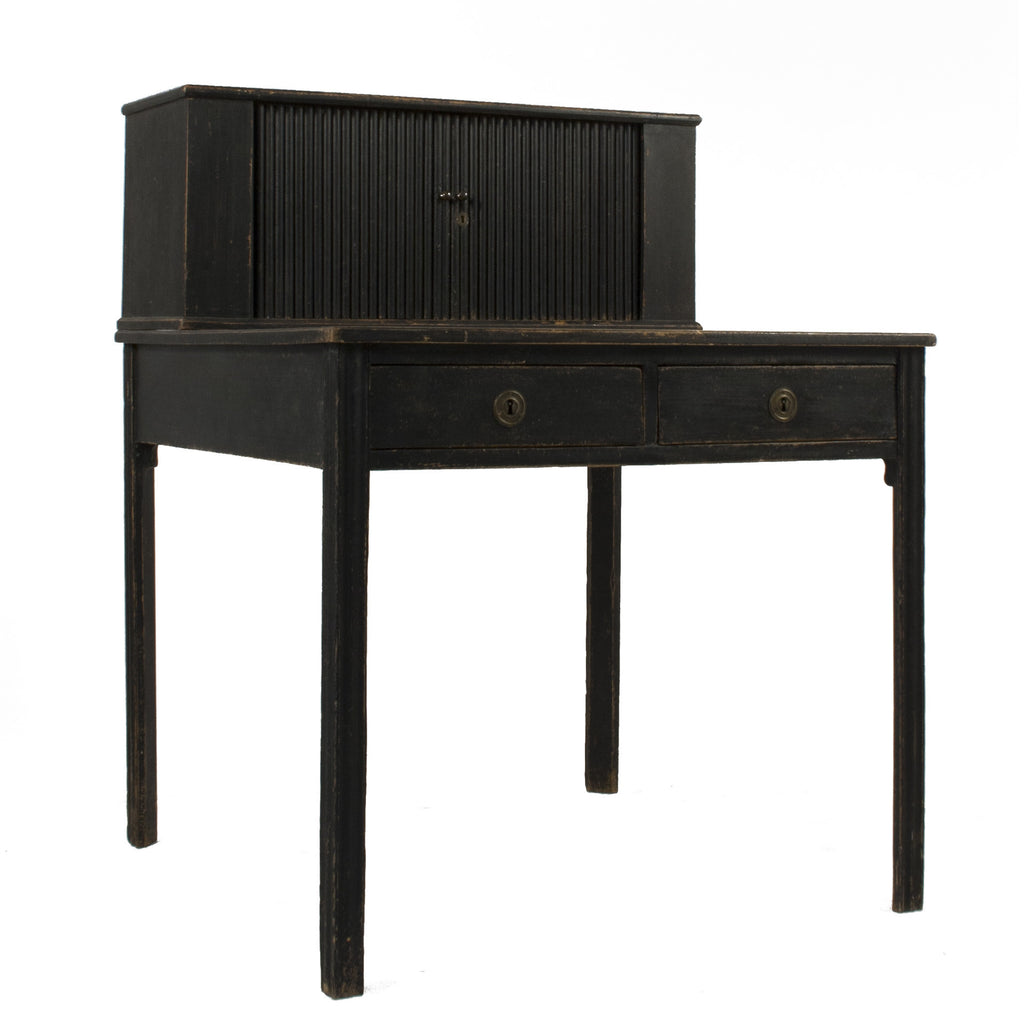 #554 Gustavian desk with two drawers, leather top and another compartment on top with sliding doors. It's signed CLB for Carl Lindborg who was Stockholm Master during the late 1700's. Sweden,