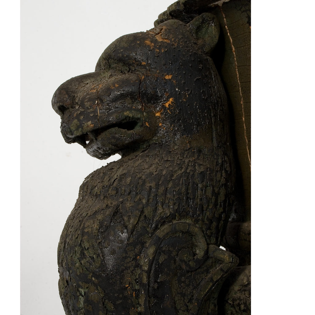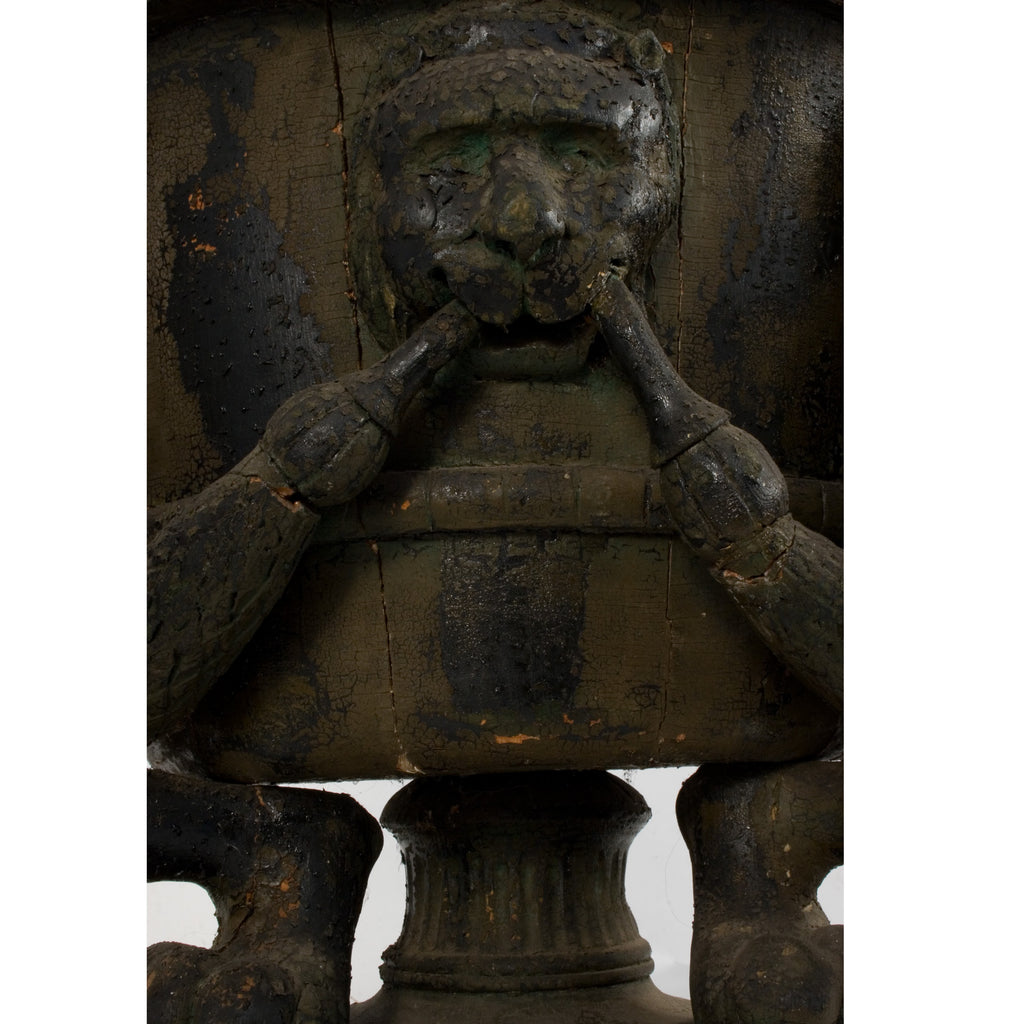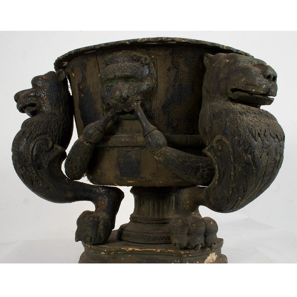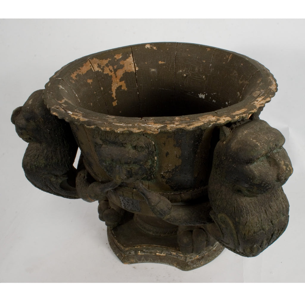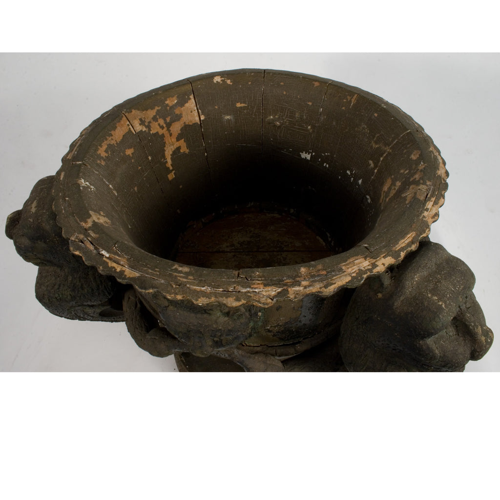 #7083 A Black Painted Royal Urn from Sweden with carved Gargoyles in wood. Sweden, Year appr. 1700.