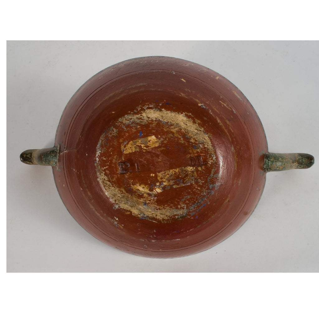 #710 Almoge Bowl with a red exterior and green interior.