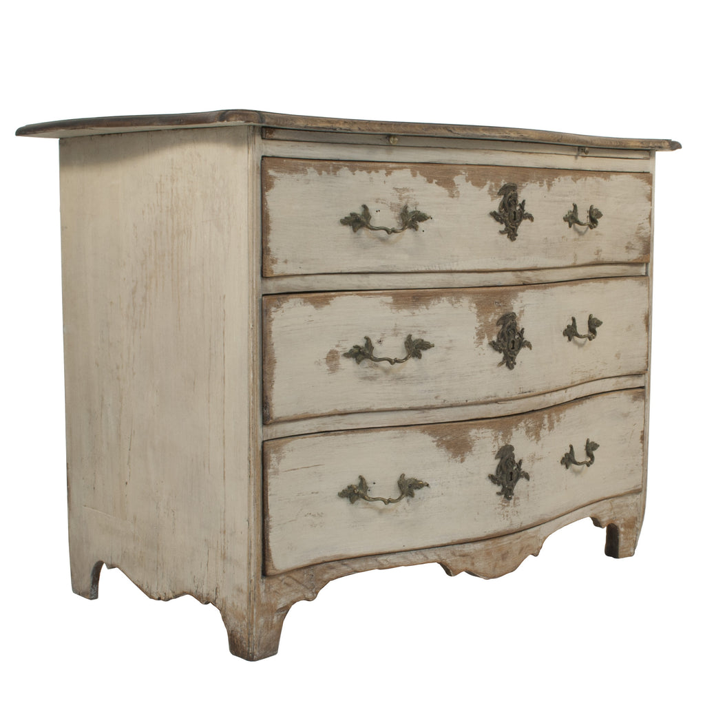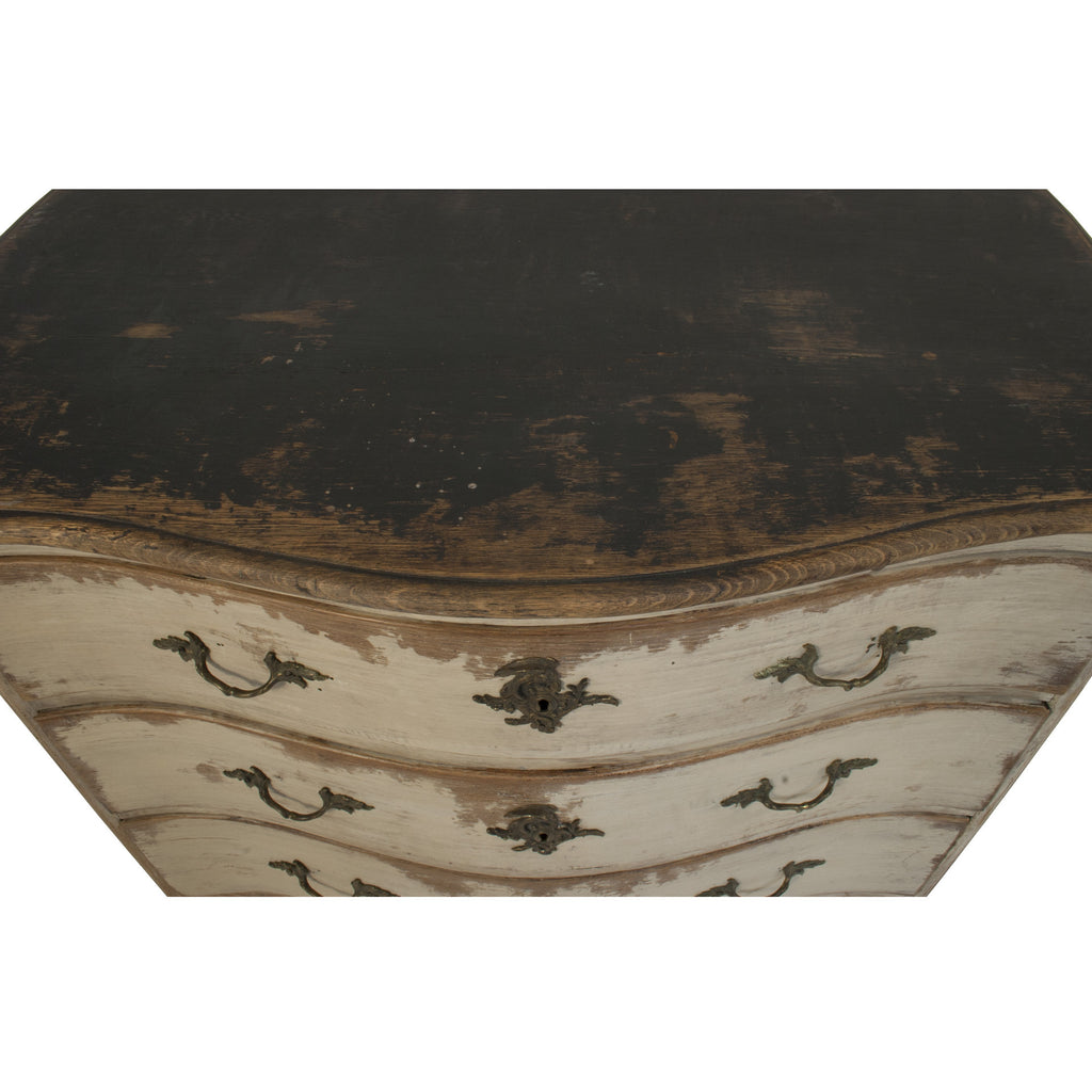 #640 Three drawer Baroque Chest in a worn patina of grey's and black. Sweden, Year Appr. 1740