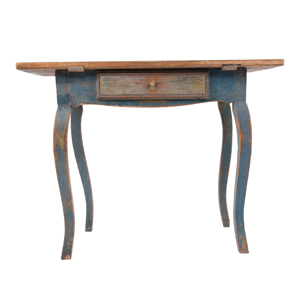 #966 Gustavian Table with a worn blue patina, Year Appr. 1770, W38 D23.5 H29
